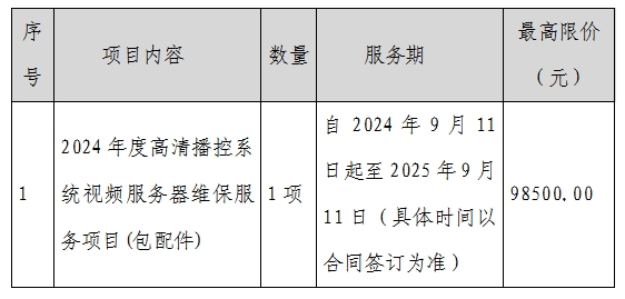 2024年度高清播控系統視頻服務器維保服務項目(包配件)采購公告